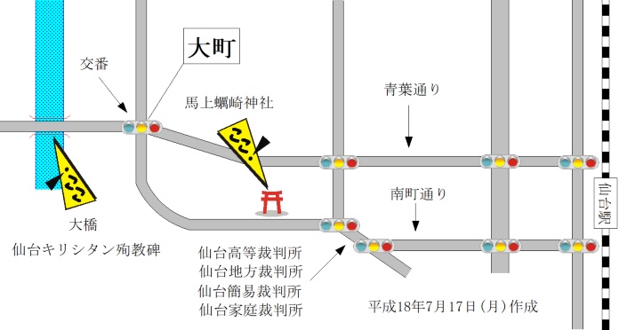 元和十年、ポルトガル人の宣教師である、カルバリオ神父ら九名が、極寒の中、仙台藩の役人による水責めにあい、大橋の下で殉教。 そのとき、役人たちは、カルバリオ神父の遺体で試し斬りをした後、無残にも広瀬川に遺体を投げ捨てた。 その後、この遺体を、キリシタンたちが拾いあげて葬り、その上に、お地蔵さんを建てて、懇ろに弔ったという。