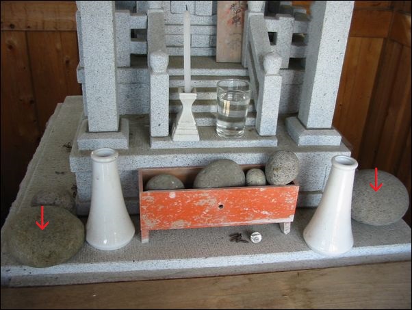 石の大きさから推量すると、赤い矢印の石が、父石と母石かな?