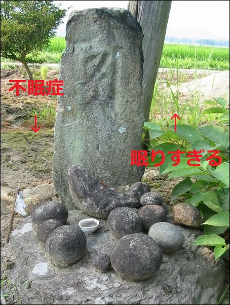 昔、子供の夜泣きに困った母親が、ある板碑に、「どうか、子供の夜泣きがやみますように…」と祈願したところ、たいへん御利益があり、すぐに夜泣きがやんだ。ところが、子供の夜泣きがやむのと同時に、今度は、子育ての疲れから、この母親が不眠症になってしまった。そこで、この母親は、再び、この板碑を訪れ、「ついでに、私の不眠症も治してください…」と祈願したところ、これもまた、たいへん御利益があり、すぐに不眠症が治癒した。そのため、いつしか、里人たちは、この板碑のことを、“ねむり明神”と呼ぶようになったという。