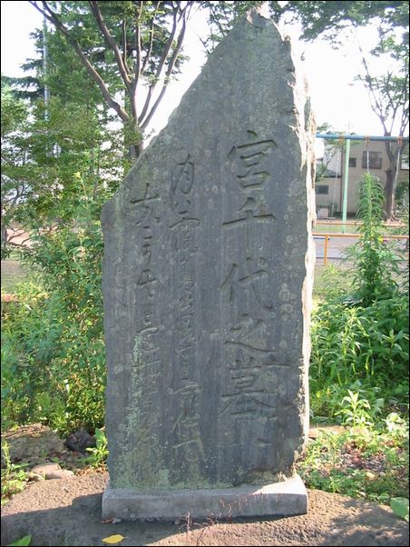 昔、松島の 雄島 という島に、 見仏上人 という僧がいた。この見仏上人には、 宮千代 という容姿端麗で歌を得意とする弟子がいたのだが、 歌の実力は相当なもので、その評判は京の都にも響くほどであった。 ある日、宮千代は見仏上人に、「 私は、歌の修行のために、京の都に行きたい 」と嘆願したのだが、 見仏上人は、当時、まだ子供であった宮千代の一人旅を危険に思い、決して許さなかった。 ある夜、宮千代は、悩んだ末に雄島を後にして京の都に旅に出た。その旅の途中、この里まで来たとき、 「 月は露 露は草葉の 宿借りて ( 月は、その姿を露の中に映しだされ、露は、その身を草の葉の上に置いている ) 」と、 上の句を詠んだ後、馬に乗りながら下の句を考えていると、注意力が欠けたために、宮千代は落馬して死んでしまった。 里人たちは、宮千代を哀れに思い、この里に塚を築いて遺体を葬った。ところが、その後、夜な夜な、この塚の周辺に宮千代の亡霊が現われて、 里人たちに、「 月は露 露は草葉の 宿借りて 」と、悲しそうな顔をして、上の句を詠むようになった。 この噂を聞いた見仏上人が、ある夜、その塚に行ってみると、噂どおり宮千代の亡霊が現われて、 「 月は露 露は草葉の 宿借りて 」と、上の句を詠んだので、見仏上人が、 「 それこそそれよ 宮城野の原 ( その美しい光景を見ることができる場所こそここだ。この宮城野原だ ) 」と、下の句を詠んだところ、次の日から、宮千代の亡霊は現われなくなったという。