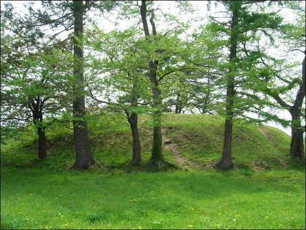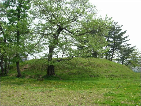 近くにある説明文によると、五世紀後半に造営された前方後円墳だという。現在は、後円部分のみが残っている。
