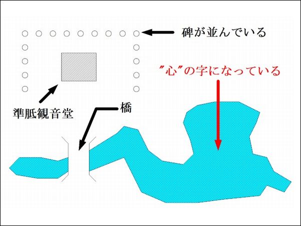 ![]() この池は、“ 心 ”という字の形に掘られたという。里人たちは、この池に、どのような願いを込めたのであろうか…。