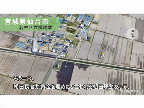 朝日塚の場所に関しては、公益財団法人仙台ひと・まち交流財団のウェブサイトに掲載されているので、そちらを参照してください (削除されていなければ、ここをクリックすれば当該映像を閲覧できます)。