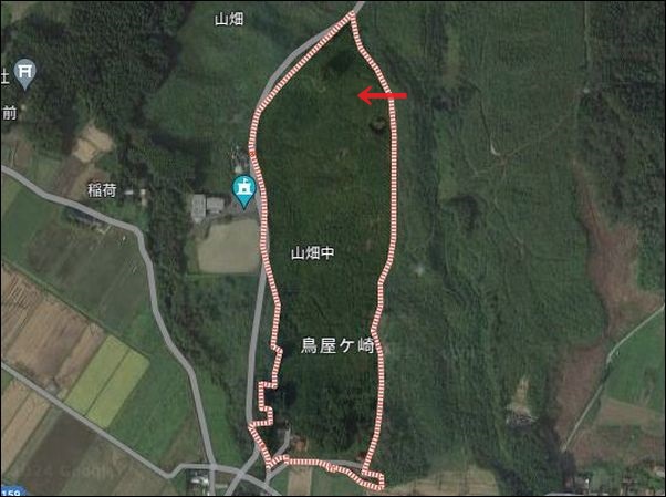 。そして、赤い矢印が、この伝承の場所。