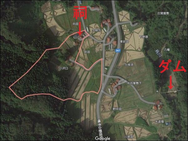 正暦 年間、優れた鍛冶屋であった 三条宗近 は、良質な砂鉄を発見するために、この里にある 烏川 のほとりに滞在した。ある日、宗近が、この里にある 鍛冶屋沢 で刀を試作したところ、納得のいく刀ができたので、その刀を笹につつんで隠しておいたのだが、ある夜、美女に化けた大蛇が、その刀を盗んでいってしまった。その後、宗近は、その大蛇を退治して刀を取り返し、その笹につつんで隠しておいた刀を“ 笹丸 ”と命名して、鎮守府将軍に献上したという。