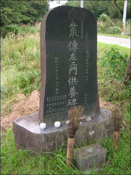 天保 年間、この里に、 荒伝左衛門 という足軽が、妻子とともに楽しく暮らしていたのだが、ある日、伝左衛門の妻が、突然、病気で死んでしまった。伝左衛門が、悲しみのあまり仕事もしなくなり、酒ばかり飲むようになっていたところ、これを哀れに思った、 菅野庄左衛門 という長者が、伝左衛門を雇って、いろいろと世話をしたおかげで、伝左衛門は、すっかり立ち直ることができた。 同じ頃、庄左衛門に空き家を借りていた、 牛之助 という男が、この里で暮らしていた。牛之助は、 牛方 をして生活していたのだが、天保三年の凶作で仕事をなくしてしまったため、 お良 という妻を残して、出稼ぎをすることになった。ところが、牛之助は、お良しに手紙を書くこともなく、仕送りもしなかったため、お良しは生活に困窮し、それが原因で病気になってしまった。これを哀れに思った伝左衛門は、いろいろと世話をしてやるようになったのだが、天保五年五月、それまで音信不通だった牛之助が、ひょっこり、この里に帰ってきたとき、牛之助の仕事仲間だった 六郎 が、「 お良が、伝左衛門と浮気している 」と中傷し、牛之助に密告したため、これに激怒した牛之助は、伝左衛門を殺害し、無残にも、その遺体を焼き捨てて、この里を去っていった。そのことを知った、伝左衛門の子供である十四歳の 音吉 と九歳の 重作 は、仇討ちを決意。その後、牛之助が 棚倉 にいることを知ると、ただちに棚倉に向かい、天保十四年七月二十七日、二人は牛之助を急襲し、見事に、牛之助を討ち取った。この仇討ちの報告を受けた仙台藩主は、この兄弟を称賛し、領地を与えたという。