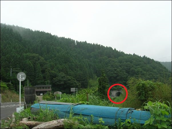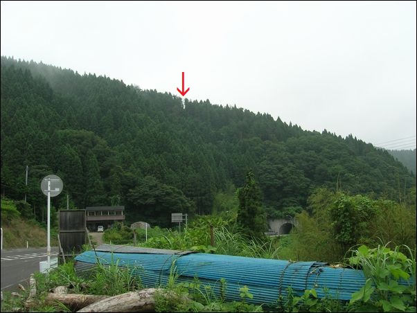 という地名の由来になった石である。上の写真の山の中に皮張石があるのだが、この近くに住んでいる古老に聞いたところ、「 私の足で、皮張石まで1時間かかったから、あんたの足だと30分ぐらいかな 」とのことであった。しかも、困ったことに、現在、この山には誰も入らないので、皮張石までの道はない。そのため、「 皮張石は、この山の頂上あたりにある 」という情報だけで、皮張石を探すことになった。いかに古老といっても、山に慣れている人間である。素人の私が勝てるはずがない。私は、片道1時間30分ぐらいはかかるだろうと計算して山に入った。因みに、上の写真の赤丸は、片倉トンネル。