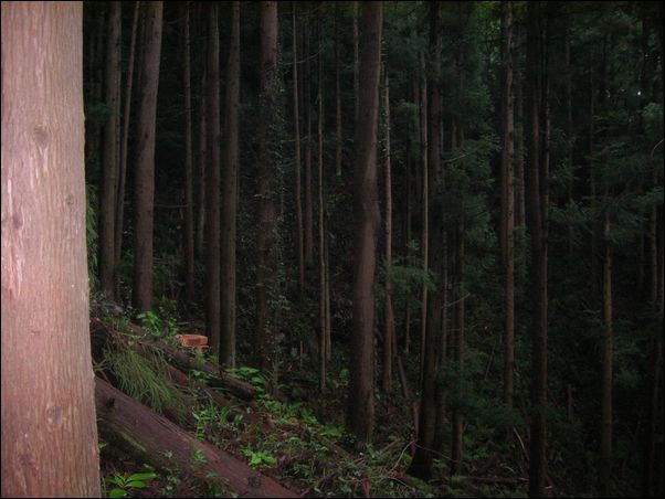 土と、傾斜角が六十度はあろうかと思われる坂である。そして、完全に山の中に入って杉が視界を遮っているため、今、自分がいる場所が分からない。そのため、とにかく、坂を上って頂上を目指すことにした。