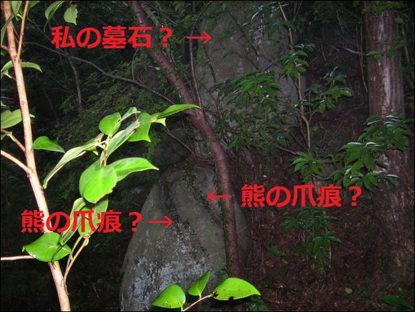 ん〜 、暗い…。恐い…。ゴロゴロ転がっている石が、自分の墓石のように見えてくる。そして、その石にある傷も、熊が引っかいた痕のように見えてくる。