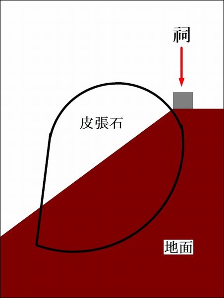 赤丸が、皮張石。