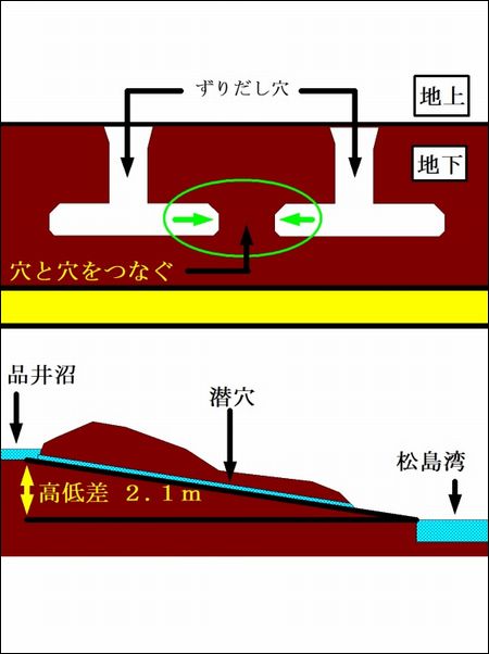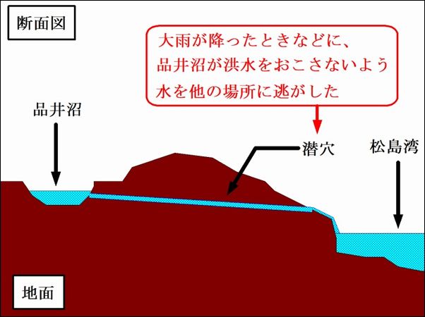 品井沼から松島湾までの高低差は、2.1メートルしかないので、水の流れはゆっくりである。