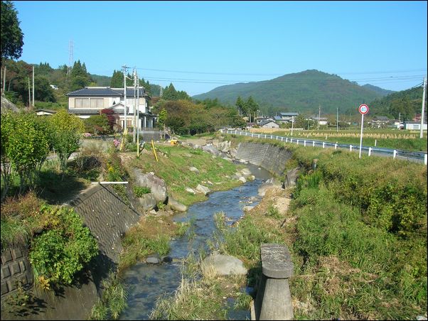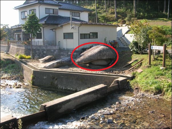 上の写真の赤丸が、重ね石。手前を流れている川は、 たら葉川