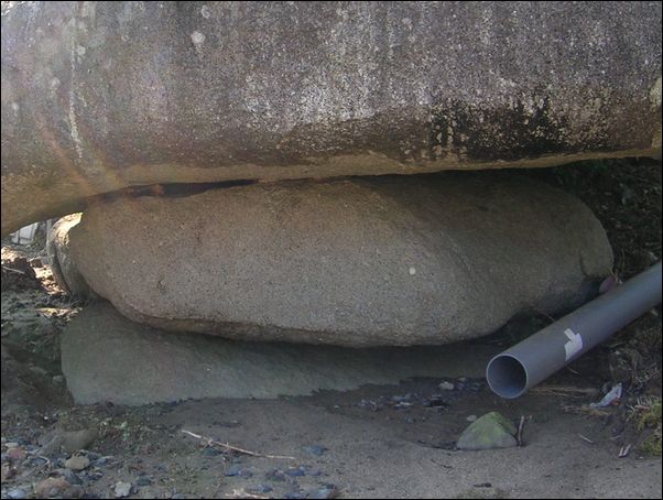 上の写真を見ると、石が三つしか重なっていないように見えるが、残りの四つは土の中で重なっていると伝承されている。