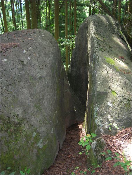この里にある 神行堂山 という山の麓に、三つの裂け目がある巨大な石がある。昔から、この里には、成人の年齢になった男女は、この巨石の裂け目をくぐるという慣習があり、もし、その成人が善人なら、なんの問題もなく裂け目を通り抜けることができるのだが、もし、その成人が悪人なら、その裂け目が、どんどん狭くなって押し潰され、その悪人は苦しみながら死んだという。