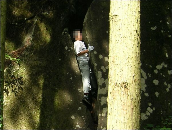 ![]() この巨石は、上の図のようになっているので、巨石の上までは歩いて行ける。