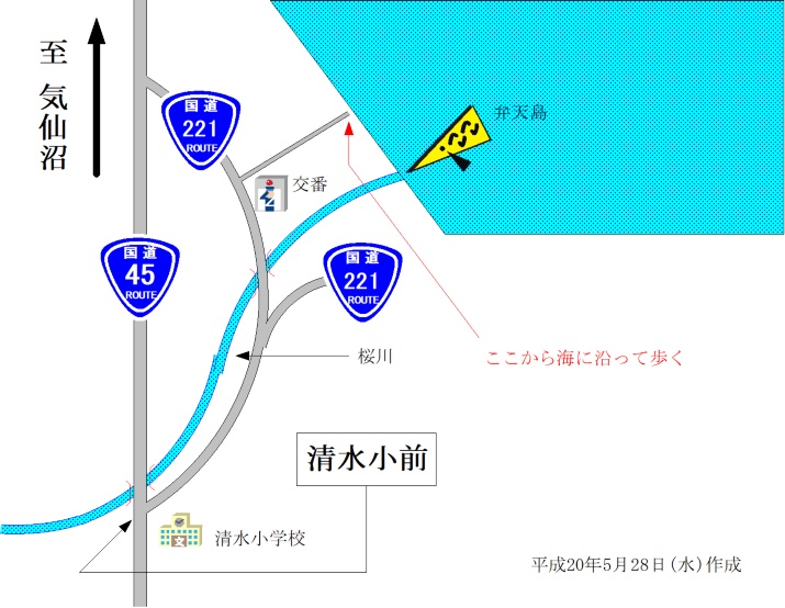 上の写真の赤い矢印が、この伝承の桜川の河口をふさいだ石。里人たちは、この石のことを、