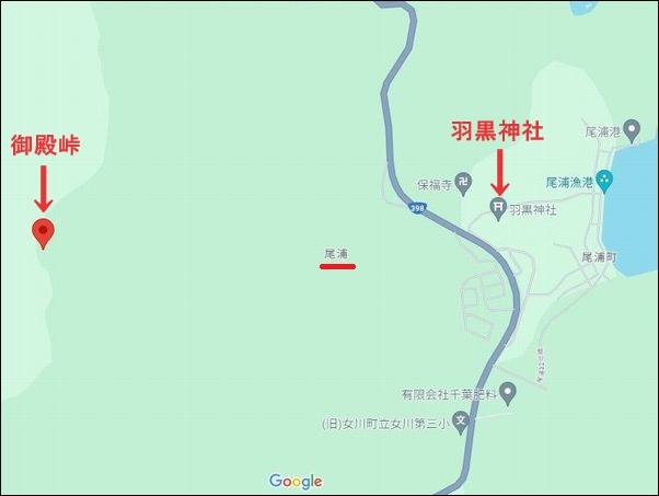 昔、未曾有の豊漁となり、この里が好景気に酔いしれていたとき、豊漁の御礼として 尾浦御殿 に鐘を奉納することになったのだが、その鐘の製作を、福島県の 梁川 に住んでいた有名な鐘師に依頼した。その鐘師は屋敷を与えられ、食事・掃除・洗濯などは、隣家の娘の世話になりながら鐘の製作に励んでいたのだが、いつしか、鐘師は自分に尽くしてくれる隣家の娘に、そして、隣家の娘は里のために一生懸命に鐘を製作している鐘師に、ほのかな恋心を抱くようになった。多くの里人たちが総出で鐘の製作を手伝い、半年後、やっとのことで鐘が完成したとき、里人たちは涙を流して鐘師に感謝し、その鐘の音を、この里に鳴り響かせた。しかし、梁川に帰る日が近くなった鐘師の寂しさはたいへんなもので、特に、この半年間、自分の身のまわりの世話をしてくれた隣家の娘との別れは、その鐘師にとって大きな悲しみとなっていた。 別れの日、里人たちは、鐘師を梁川まで送るために二人の若者をつけ、隣家の娘を含む五〜六人の女性を 御殿峠 まで見送りに行かせた。御殿峠では、鐘師と女性たちの間で、「 ありがとうございました。体を大切にしてくださいね 」など、いろいろな言葉が交わされたのだが、隣家の娘だけは、「 さようなら… 」と言った後、悲しみに耐えきれず、顔に布をあてて横を向いたまま泣き出してしまった。それを見た鐘師は、彼女の肩に手をかけ、「 どうか、私のことは諦めてくれ。私も、あなたのことを諦めるから。どうか、泣かないでおくれ… 」と言って慰め、涙を流しながら梁川に向かって旅立った。そのため、いつしか、この里では、次のような民謡が歌われるようになったという。 尾浦御殿の 鐘つけば 伊達の梁川 思い出す 尾浦御殿の サイカチの木は 花が咲けども 実がならぬ( 羽黒神社の鐘をつくと、あの娘さんが、愛しい梁川の鐘師のことを思い出してしまうよ。羽黒神社のサイカチの木は、花が咲いても実がならない。それと同じように、あの娘さんと鐘師の恋も、相思相愛にもかかわらず、とうとう実らなかったね )