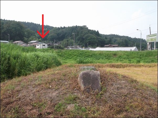 赤丸が、この伝説の馬が死んだ場所。現在でも塚になっている。残念ながら、昔、建てたという碑はなくなっていた。