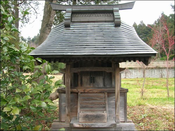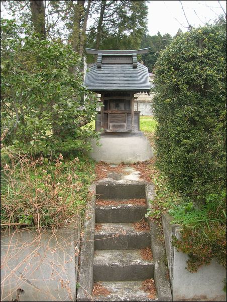 前述の会社の駐車場の右側にある。赤い矢印が、巫女御前社。