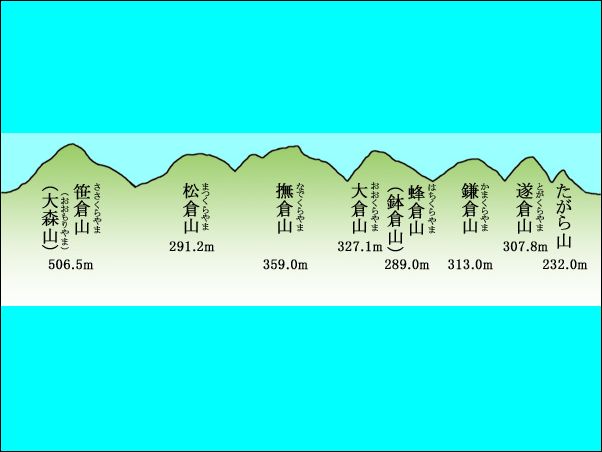 昔、このあたりの人間たちは群れを作って狩猟をし、獲物を追って新たな土地に移動するという厳しい生活をしていた。その群れの中に、アサイナサブロウという若者がいたのだが、たいへん心の優しいアサイナは、自分たちの罠にかかった獲物でさえ、 「 かわいそうで、とても殺すことができない ! 」 と言って、すべての獲物を逃がしてしまうのであった。ある日、優しすぎるアサイナに激怒した群れの者たちは、 「 この役立たずが ! お前のような人間は谷に行け ! 」 と叫んで、アサイナを谷に置いて、新たな獲物を追って他の土地に移動してしまった。この “ 谷 ” というのは、群れの者たちが、足手まといになる老人や病人を捨てる谷のことであり、あとは死を待つだけという悲しい場所であった。 群れの者たちに捨てられたアサイナであったが、谷の者たちは、たった一人の若者であるアサイナを優しく迎えた。ある日、ある里に住んでいる娘が谷に来て、自分たちの里では、みんなで定住して、 “ 米 ” というものを作っていると谷の者たちに話した。それを聞いた谷の者たちは、 「 米さえあれば、若者たちが獲物を追って土地を移動する必要がなくなる。若者も老人も病人も、みんなで一緒に生活することができるぞ 」 と思い、米を作ることを決心したものの、老人と病人しか住んでいない谷で頼りにできるのは、アサイナだけであった。 その日から、アサイナは、谷の者たちのために田圃を作ろうと一生懸命に働いたのだが、しばらくすると、アサイナの体に異変が起こり始めた。アサイナの体が、まるで火のように熱くなってきたので、心配した谷の者たちが、 「 アサイナよ … 、火の玉でも飲んだのか ? 」 と言いながらアサイナの体に触ると、その手が火傷するほど体が熱くなっていた。その後、アサイナの不思議な力によって谷には多くの田圃ができ、稲穂が実る秋には、金色の波を思わせるような幻想的な風景が描き出された。そして、不思議なことに、この美しい風景を見た老人や病人たちが元気を取り戻し、体を動かして田圃で働くようになった。 ところが、ある年の秋、突然、黒い雲が谷を覆ったかと思うと、激しい雨が降ってきた。そして、その雨は三日三晩も降り続き、四日目には、すべての田圃を水没させてしまったため、 「 せっかく作った米が消えていく … 」 と、谷の者たちは悲痛な声をあげたのだが、その翌日、驚いたことに、今度は空から雨のように土が降ってきた。その土の雨を降らせているのがアサイナだと知った谷の者たちが、 「 アサイナ 〜 ! どういうことだ 〜 ! 」 と呼びかけてみると、 「 谷の田圃は、おれが守る ! 今、雨が降って洪水になったときに、その水を逃がすことができる大きな沼を作っている。そのために、土を掘っているところだ 」 と、はるか雲の上からアサイナの声が聞こえてきた。掘った土を運んで山が一つできるたびにアサイナの体は大きくなり、とうとう、雲を突き抜けるまで大きくなってしまっていた。その大きな体で掘り出した土を タンガラ に入れて運び、ドカ 〜 ッと捨てていた場所に土が積もって、やがて、七つの山ができた。その後、大きな沼を作り終えたアサイナは、強い風を巻き起こしてからドタッと倒れ、しばらくすると、その体がバラバラになって空に飛び散り、それぞれの破片が一つの小さな山になったという。