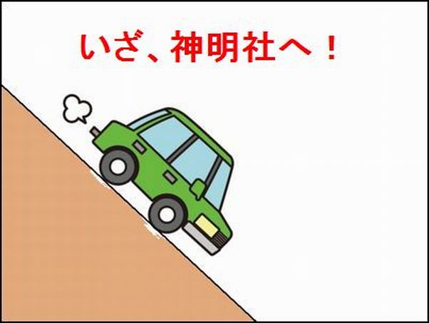 ![]() ブ 〜 ン ! 古老に御礼を言う為に神明社へ。すごい急な下り坂であった。