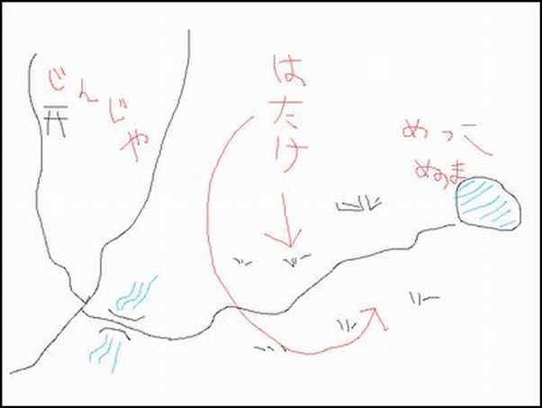 ![]() 不安になった私が、いろいろ細かい質問をして、やっと簡易的な地図が完成した。無いより良いか … 。