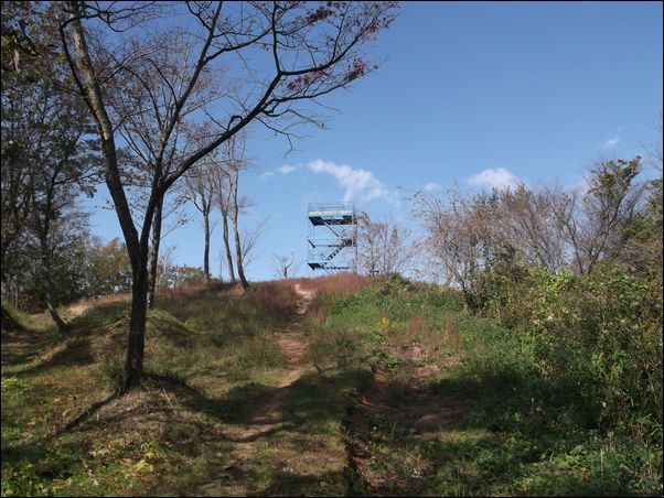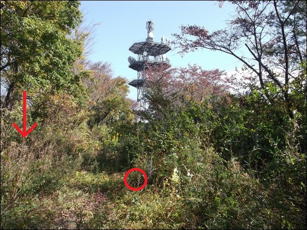 赤丸は、NTTの無線中継所。その向こう側が番ヶ森の頂上。