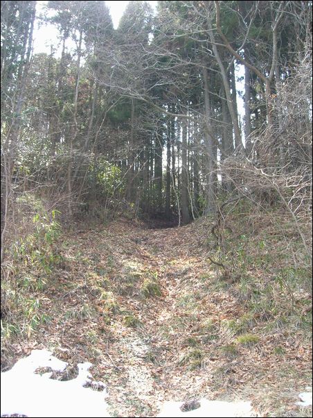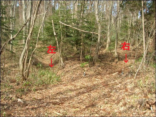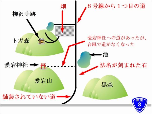 ”と呼び、その場所がある森を、“ トガ森 ”と呼んだという。上の写真が、トガ森。柳沢寺跡に行くには、赤い矢印の道を進む。