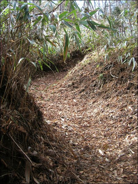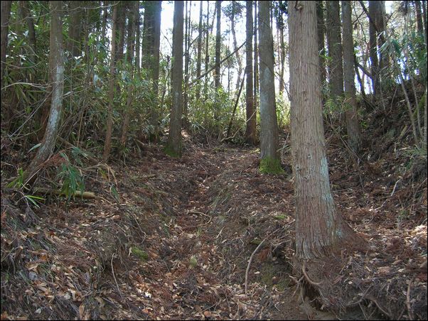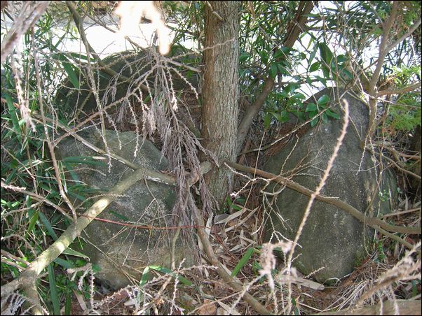 これが、愛宕山。古老の話によると、この愛宕山の頂上に、愛宕神社があったという。この山に登って、頂上あたりを調査したのだが、何もなかった。しかし、古老は、立派な鳥居や祠があったと証言しているので、もっと詳しく調査すれば、愛宕神社の跡は発見できると思われる。因みに、愛宕神社への道は、台風による土砂崩れでなくなってしまった。