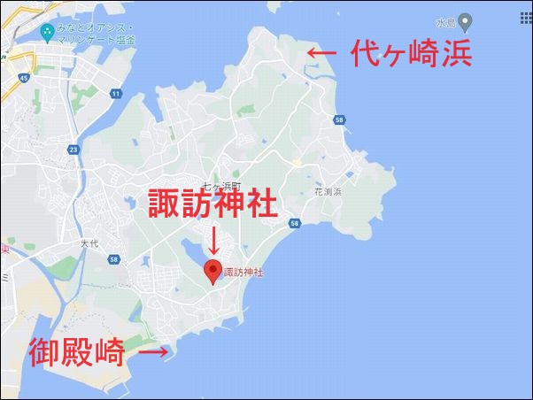 昔、この里に、 花淵善兵衛 という者が住んでいたのだが、ある日、善兵衛が散歩をしていると、一匹の大蛇が怪我をして苦しそうにしているのを発見した。この大蛇を哀れんだ善兵衛が、家来に命じて薬をぬらせたところ、数日後、善兵衛の家に、花のように美しい女性が訪ねてきて、「 私は、先日、あなたに助けていただいた大蛇です。御礼に、これをどうぞ 」と言って、 一疋 の絹と昆布の苗を置いていった。大蛇が置いていった絹は、いくら使ってもなくなることがなかったので、無限に使うことができたし、また、大蛇が置いていった昆布の苗を 御殿崎 に植えたところ、数年後には 代ケ崎浜 まで昆布が茂り、その昆布は、「 たいへん大きくて、味わいも良い 」と評判だったのだが、しばらくして、善兵衛が、この里を去ると、突然、激しい暴風雨がおこり、昆布は、ことごとく散り絶えてしまい、いつのまにか、絹もなくなってしまったという。
