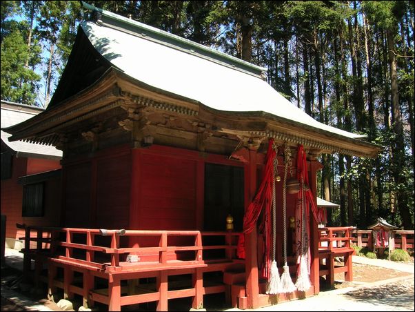 これが、諏訪神社の拝殿。奥に見えるのが本殿。