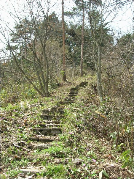 急な階段を上る。