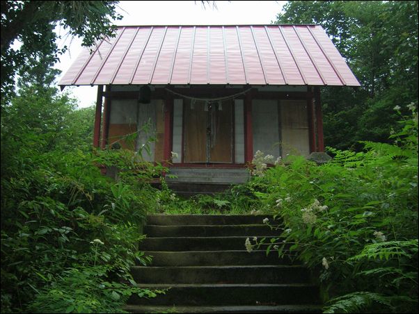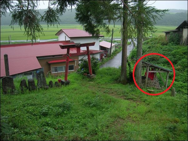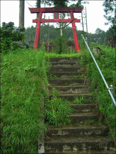 という神社の鳥居。この神社に、ひっちがい婆さんの石像がある。
