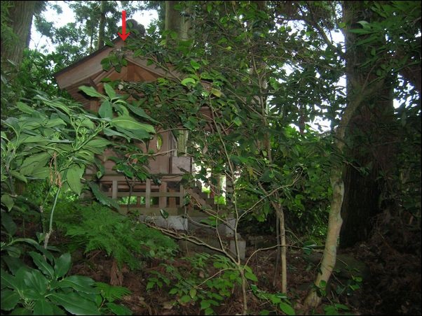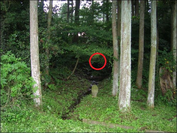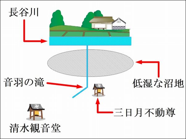 ![]() 音羽の滝の近くに、三日月不動尊がある。赤い矢印が、三日月不動尊。