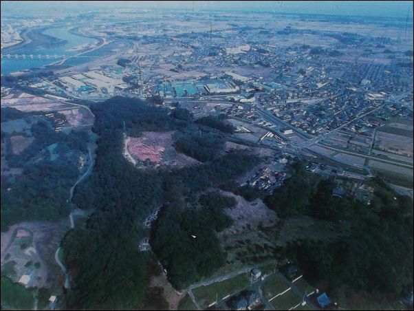 これが、三十三間堂官衙の全景。すぐ近くを阿武隈川が流れている。