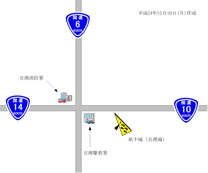 になっている。ちなみに、この城を臥牛城と呼ぶのは、この城があった山の地形が、牛が伏せた形に似ていたからである。