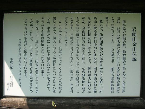 昔、京の都に、 三条盛実 という者が住んでいた。盛実には、おまんという姫がいたのだが、この姫は、なかなか子供に恵まれなかった盛実が、北野天満宮に祈願して、やっとのことで授かった姫であった。ところが、この神は、盛実に姫を授けたとき、「 この姫は、陸奥に住んでいる“ 炭焼藤太 ”という者と結婚させろ 」という不思議な条件をつけた。その後、成人したおまんが、神が与えた条件に従って陸奥にきてみると、なんと、ある里の山奥の炭焼き小屋に、確かに、藤太という者が住んでいた。そこで、おまんは、藤太に今までのことを話し、藤太の妻となった。 おまんは、京の都から、少しだけ黄金を持ってきていたのだが、その黄金の価値を教えられた藤太は、「 そういえば、 岩崎山 にそんなもんがあったなぁ… 」と思い、さっそく、岩崎山で金の採掘を始めたところ、その後、たいへんな長者となり、 吉次 ・ 吉内 ・ 吉六 という三人の子供にも恵まれて、幸せな日々を送った。ある日、吉次が、岩崎山で金を採掘していたとき、突然、温泉が湧きだしたので、この温泉を整備して里人たちに開放すると、里人たちは、たいへん喜んで感謝したという。