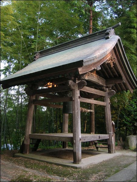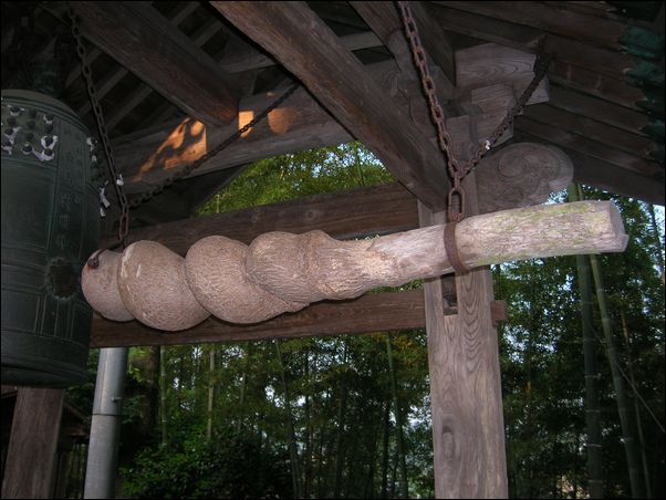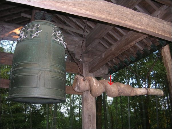 ロープがないところを見ると、木を持って鐘をつくようである。