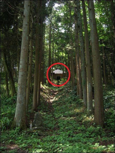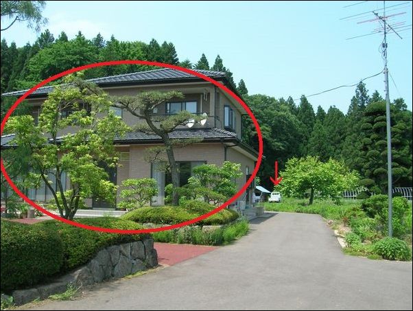 後述の地図に記述しているのは、赤丸の家まで。根無藤は、この家から、さらに、赤い矢印の方へ進む。