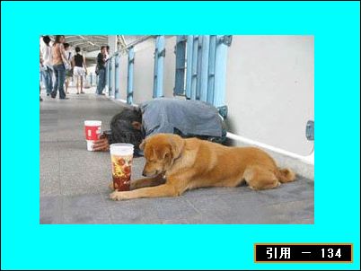 ![]() 「そして、この影響は犬にも及び、人間と共に物乞いをする犬の姿がたびたび目撃されています」。