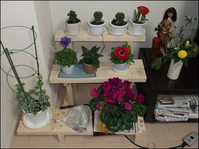 昨年、マンションのベランダに花を飾る棚を作ったのだが、部屋の中にも同じものを作ることにした。