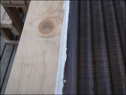 反対側の隅をコーキング。