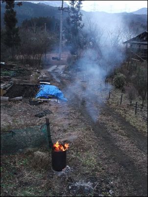 寒くなってきたので、不要なものを燃やして暖をとりながら作業をした。