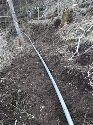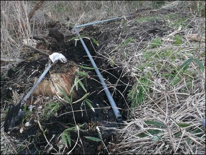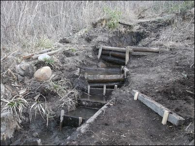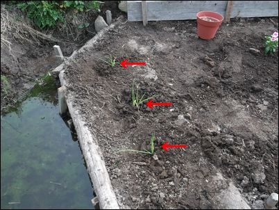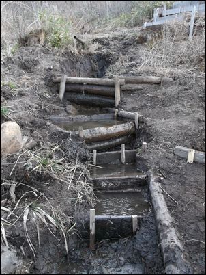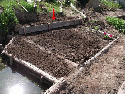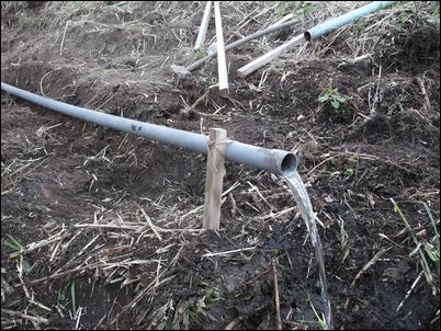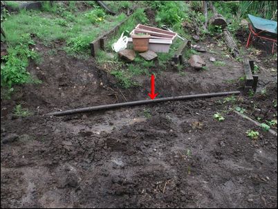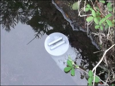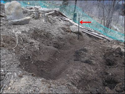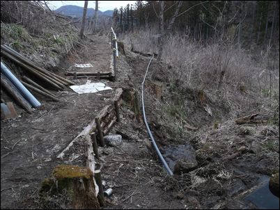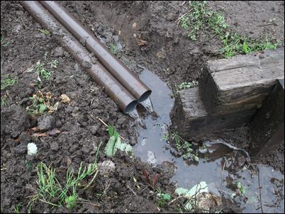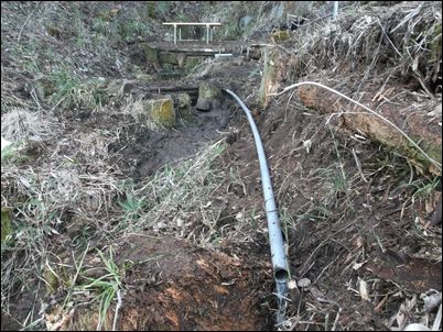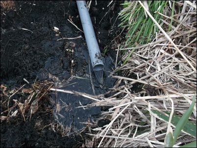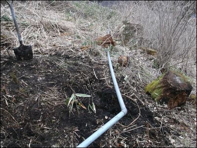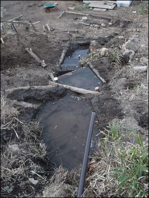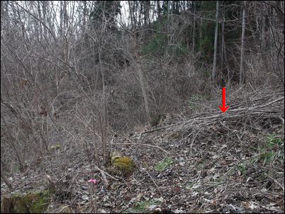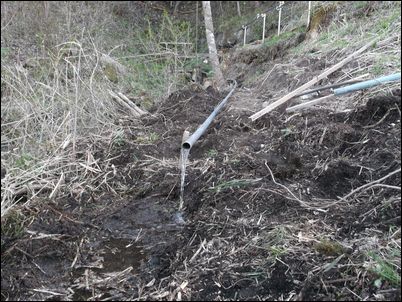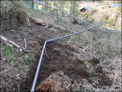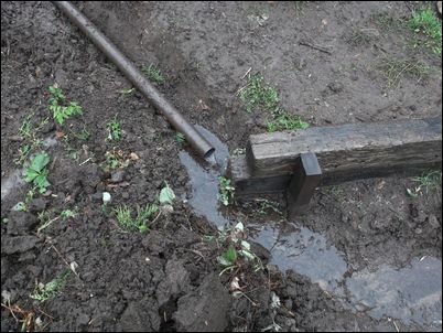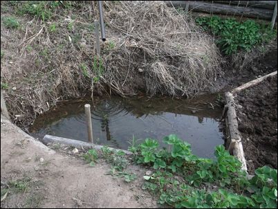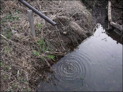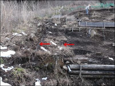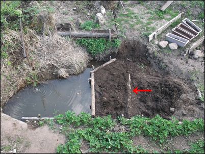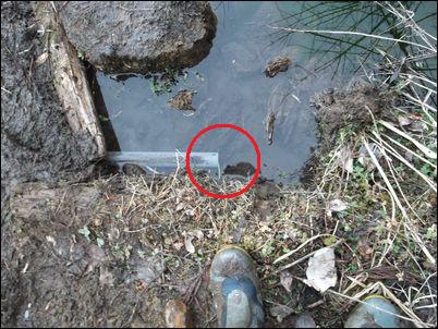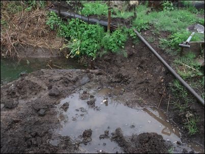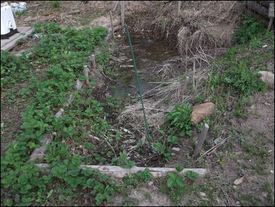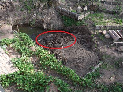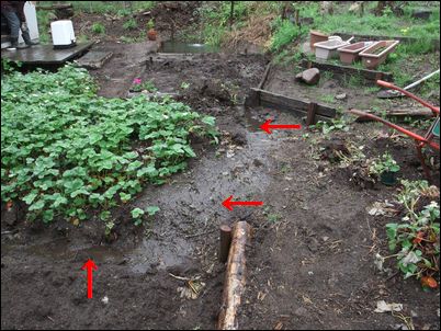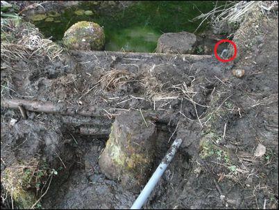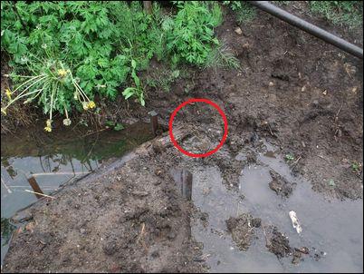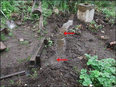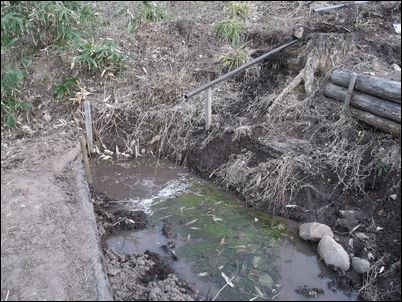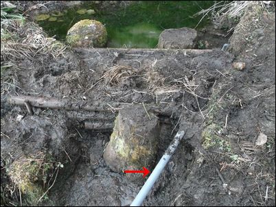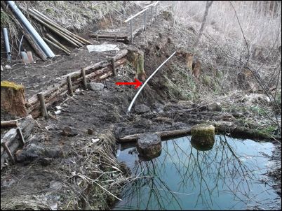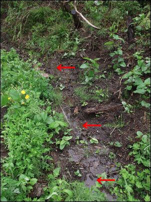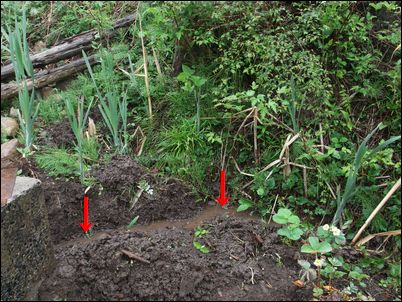 以前は、右の赤い矢印のところに水が流れていたが、その流れを左の赤い矢印のところに移動した。