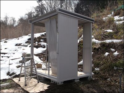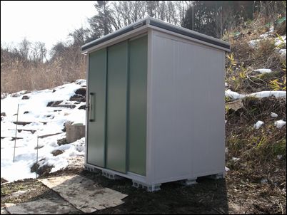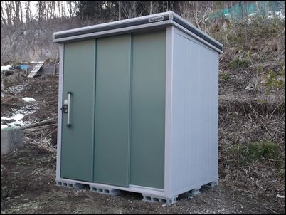 工事業者の方に、物置小屋の組み立て方を見せてもらった。