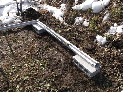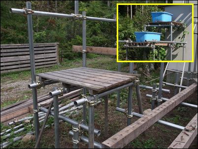 暮露暮露庵の再建計画の続きである。垂木クランプを使って階段の基礎を作る。