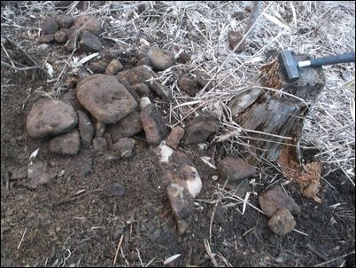 ONさんとの土地の境界線に杭を打ち…。