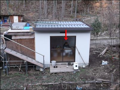 赤丸の部分に小屋を建てるので、雨に濡れないように屋根を作る。
