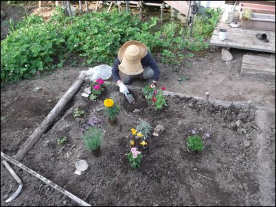 四隅に穴を掘る。