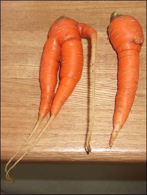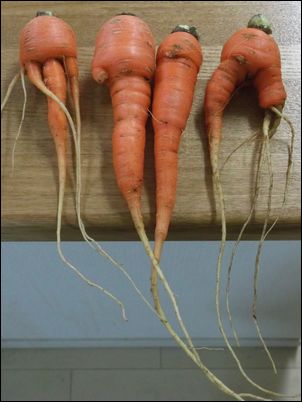 初めてニンジンを収穫したのだが、「こんなにも形がバラバラなのか」と思うほどであった。